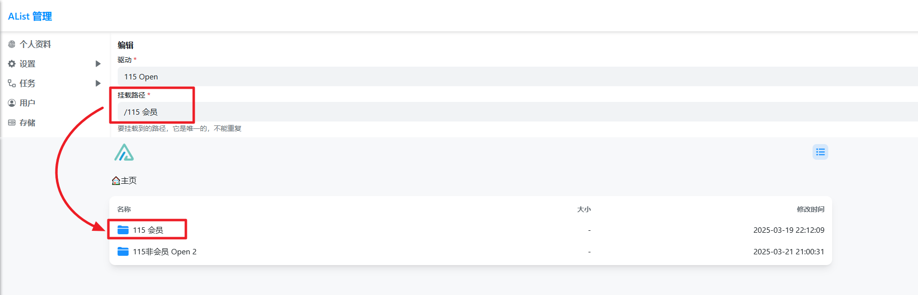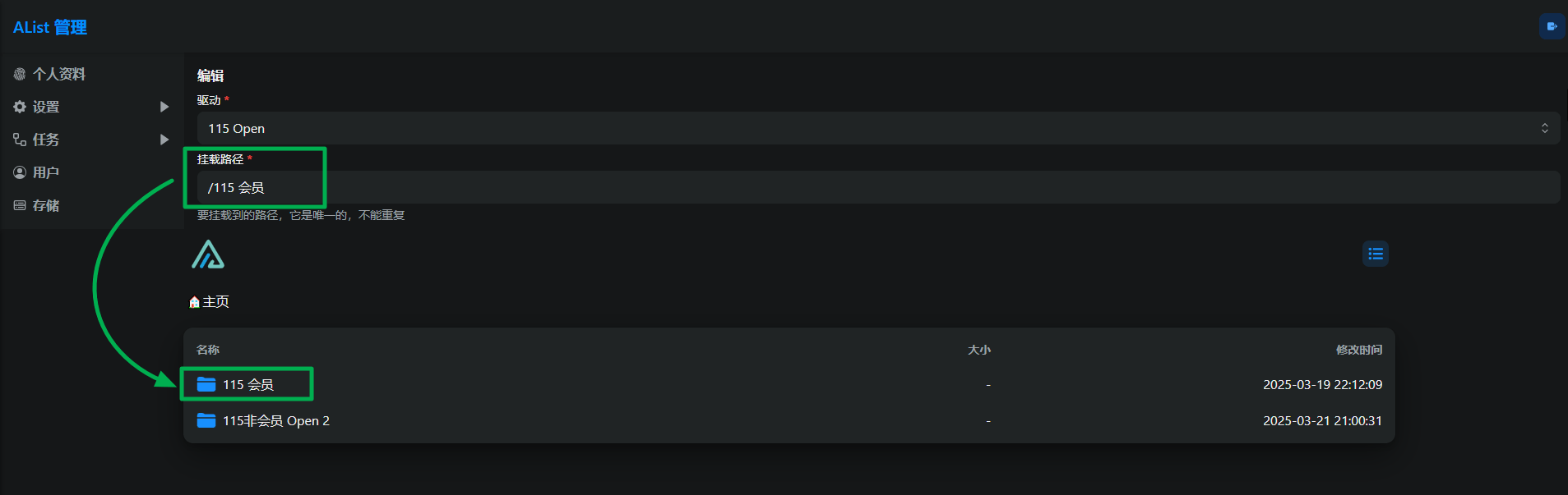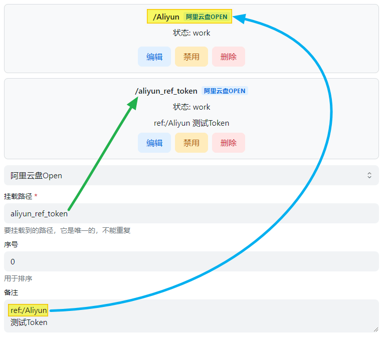 从 已挂载的存储 中引用认证、令牌等,同一个Token多个网盘使用